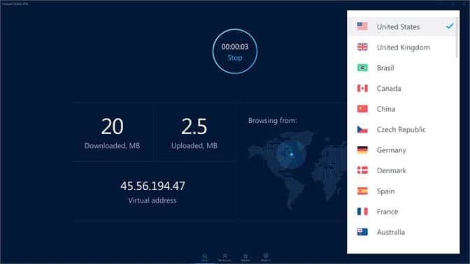 Avec 2 500 serveurs dans 25 pays, le VPN offre une connexion à haut débit avec des vitesses de téléchargement de 0,54 mégaoctets par seconde.